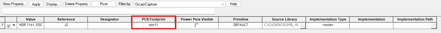 Foorprint를 추가하고 싶은 part를 schematic 상에서 더블클릭을 하면 Property 창이 열리는데