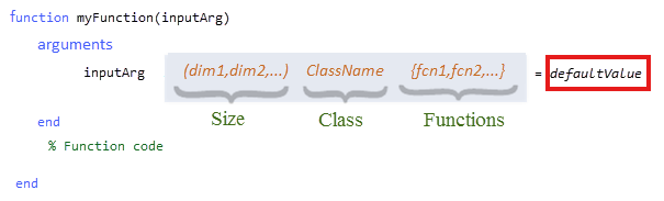 위 그림은 Mathworks 에서 설명하는 arguments 키워드의 구조이다.